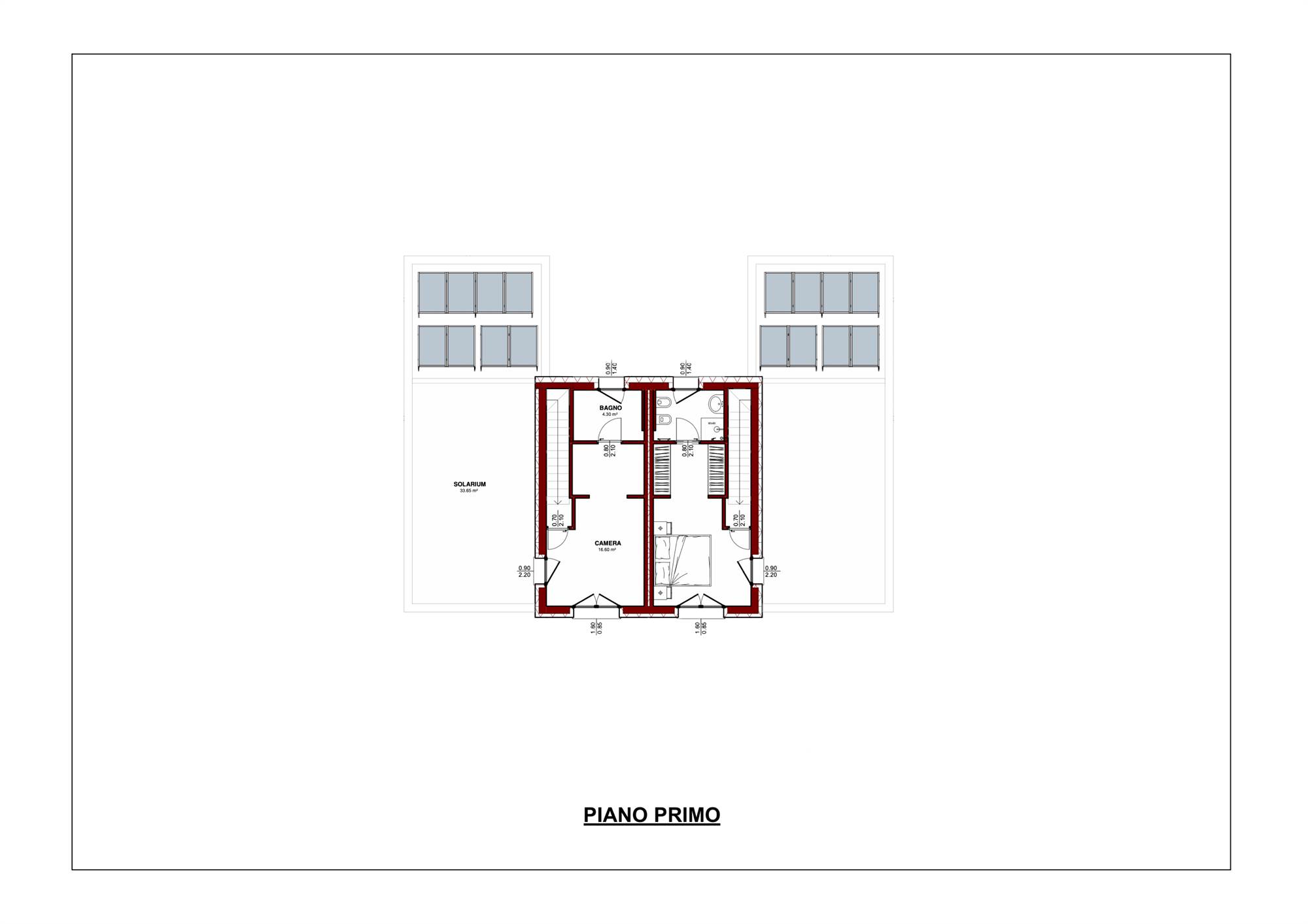 Piano Primo: Camera padronale con guardaroba e bagno, terrazza di 33 mq con pergolato e vasca idromassaggio;