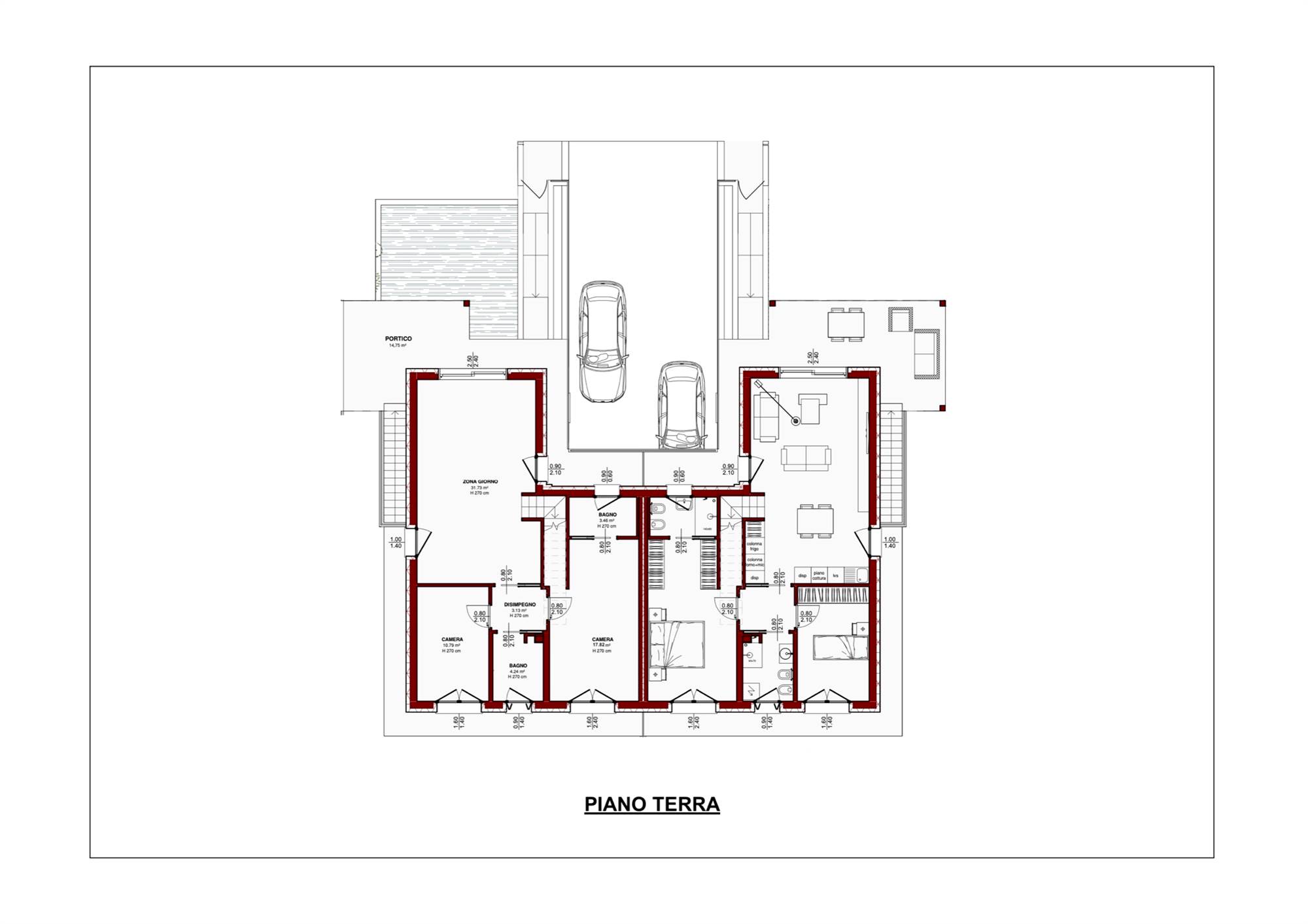 Piano Terra: Ingresso, soggiorno-cucina, portico, giardino privato con piscina, camera matrimoniale con guardaroba e bagno, seconda camera e bagno di servizio;